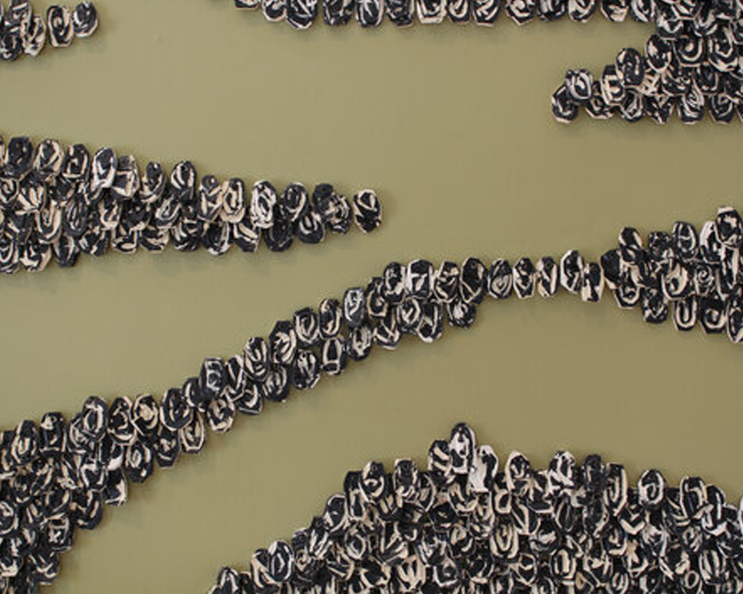 This body of work is an examination of geographic landscapes created by organic forms that serve as reminders of the physical process of reduction made by nature, animals, and human beings. I’m interested in how matter is controlled by commodity and by nature. The negative space may be a sign of an inhabitable place or the dark sky is a constellation that holds clues about the past and future or it is simply a visual silence.